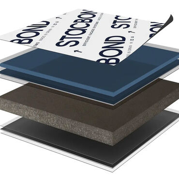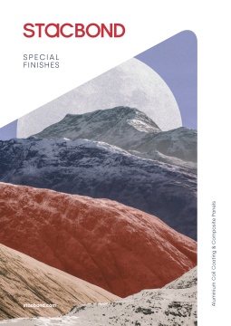 El panel composite Stacbond es un material innovador compuesto por dos láminas de aluminio de 0,5 mm de grosor y un núcleo de carga mineral que puede ser incombustible Stacbond A2 o retardante al fuego Stacbond FR, recubierto con pinturas especiales resistentes a la intemperie.