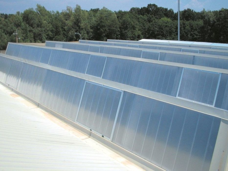 Las placas de policarbonato celular PanelPiu, la perfilería perimetral y los sistemas de apertura se suministran a la medida definida en proyecto.